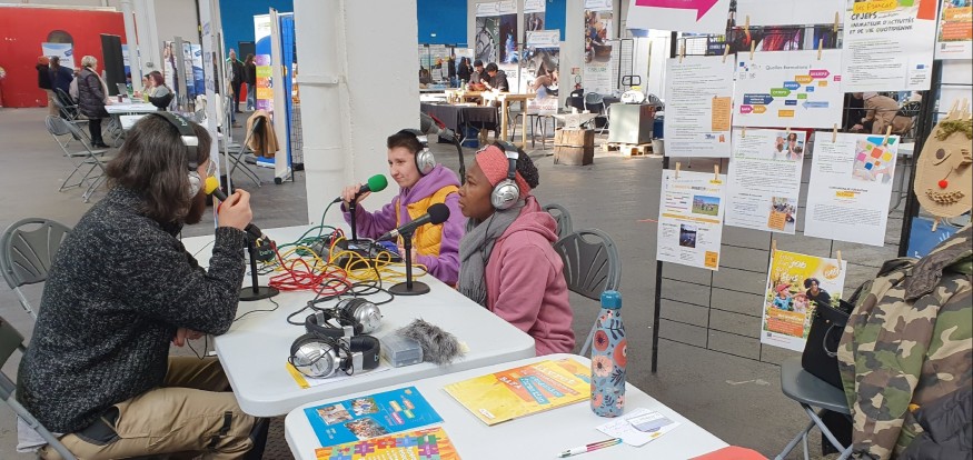 Dans le cadre d’une formation professionnelle (CPJEPS) qui se déroule à Dole dans Jura, une équipe d'animatrices et d'animateurs a découvert le matériel d'enregistrement audio pour "couvrir" un évènement local. En effet, le 19 février 2025, ils se sont rendus sur le Festival de la formation pour réaliser des prises de son. Un micro-trottoir pour interroger les visiteurs du festival, des interviews des exposant es, un plateau d'enregistrement pour échanger sur les métiers de l'animation. L'occasion pour chaque stagiaire d’aller vers les gens, de poser des questions, d’utiliser du matériel spécifique.